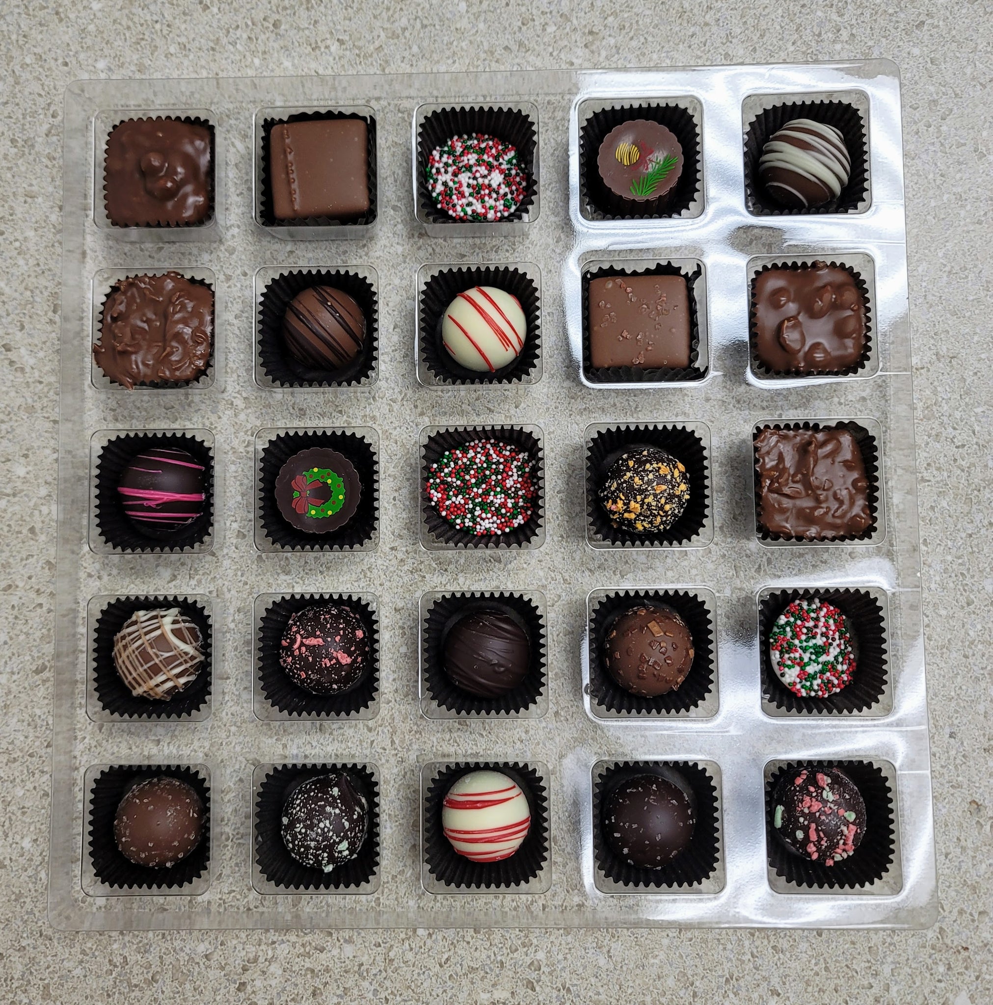 25 doors reveal a single piece of our delicious signature chocolates and truffles. Sure to please everyone this Advent Season.